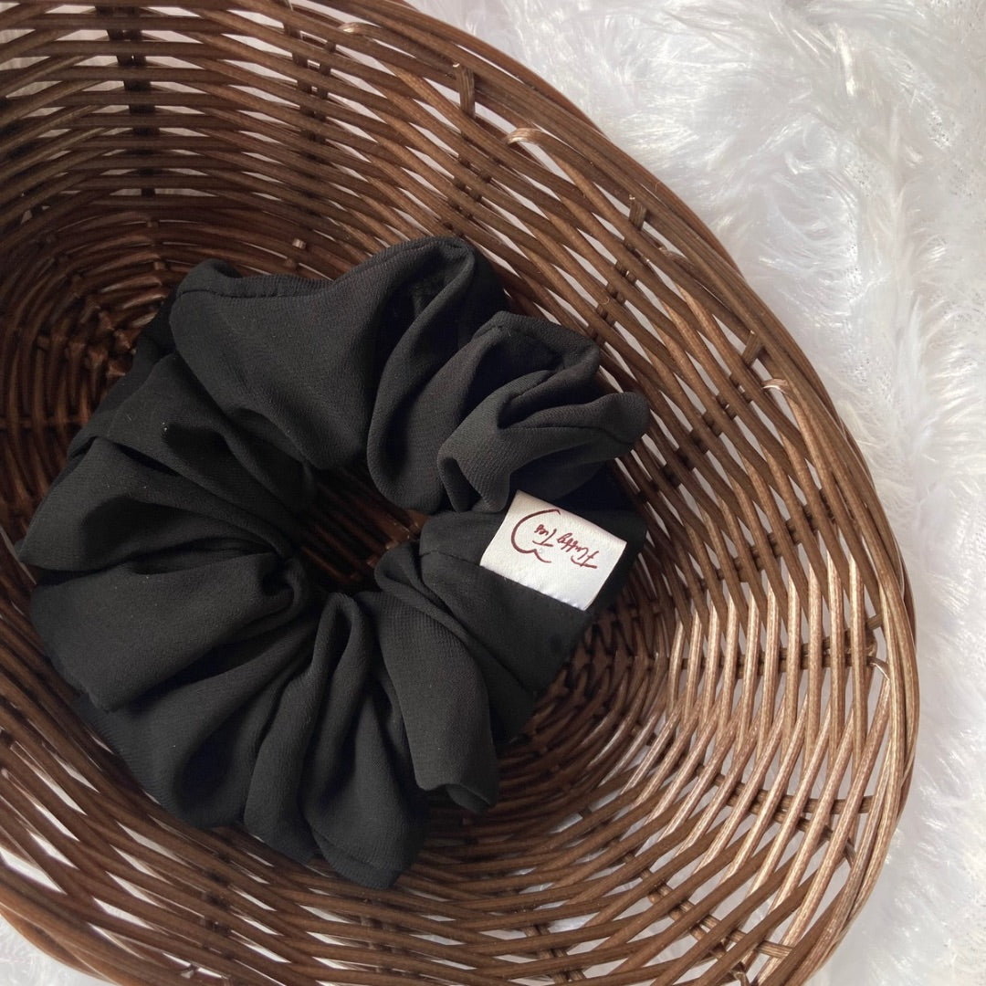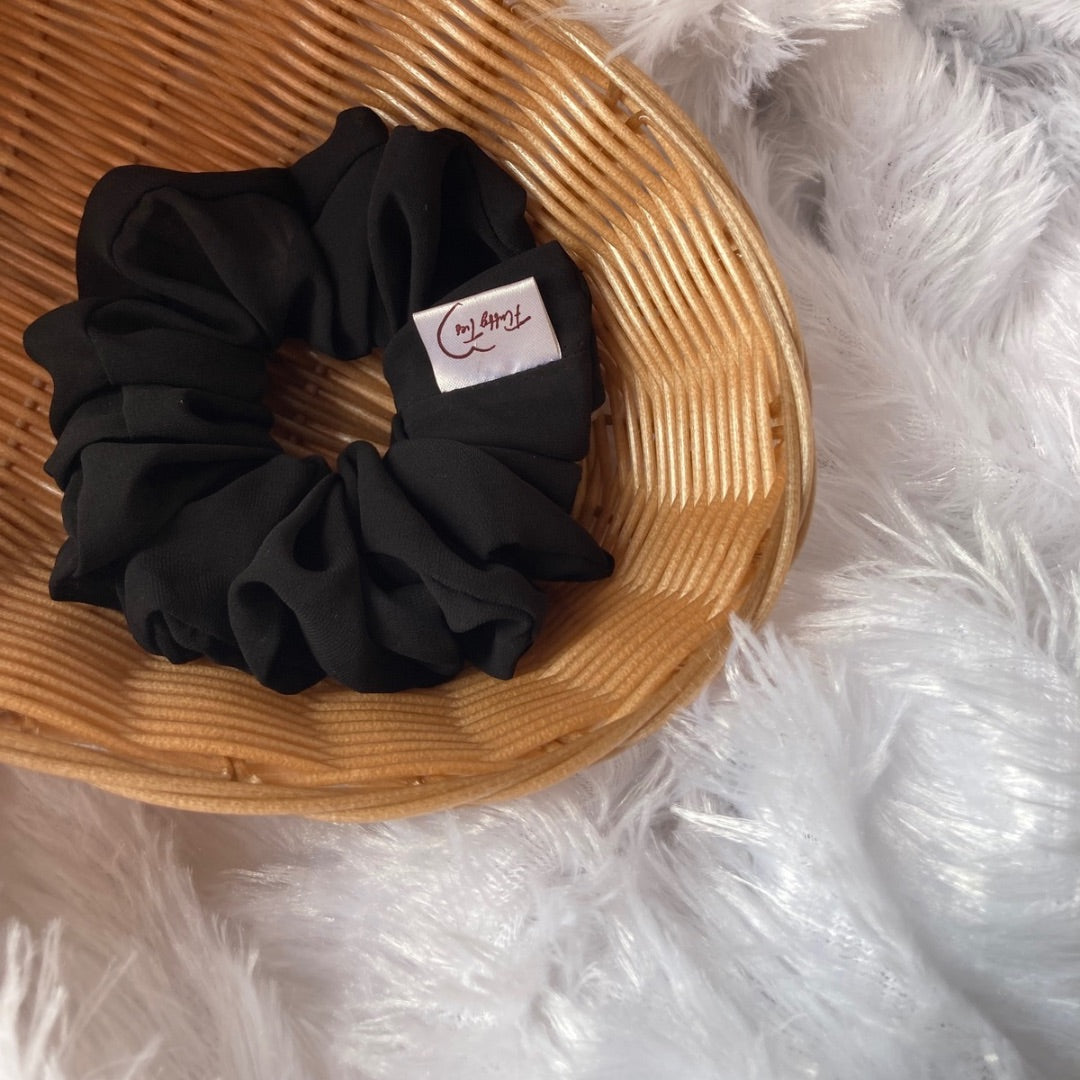 Style Tip- Sleek and classic, the Black Georgette Scrunchie is a timeless accessory for any occasion. Made with lightweight georgette fabric, it ensures a comfortable and hair-friendly hold, perfect for elevating your everyday style.