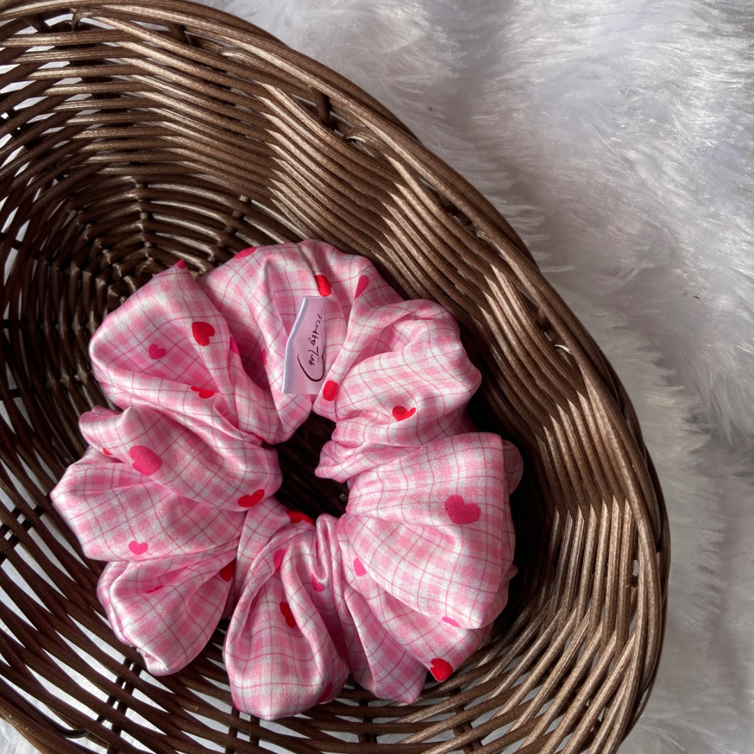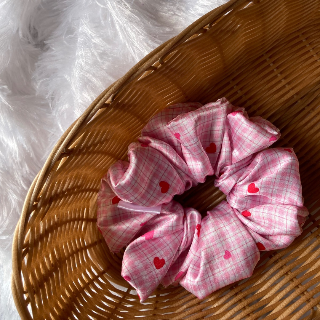 Bring out your playful side with Heartsy, designed with quirky heart block prints on luxurious satin. Its soft sheen and modern design make it a standout accessory for both girls and women who love fun, fashionable details.