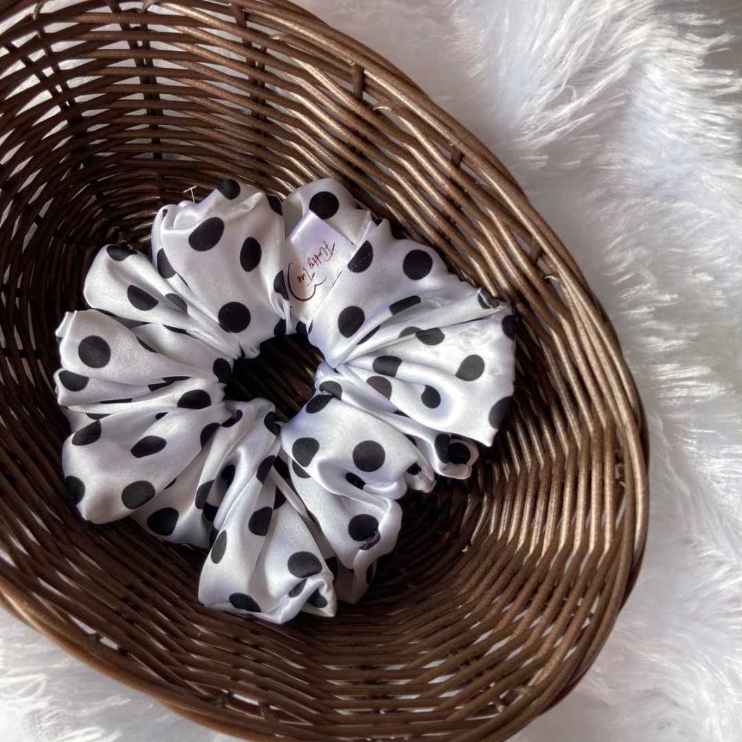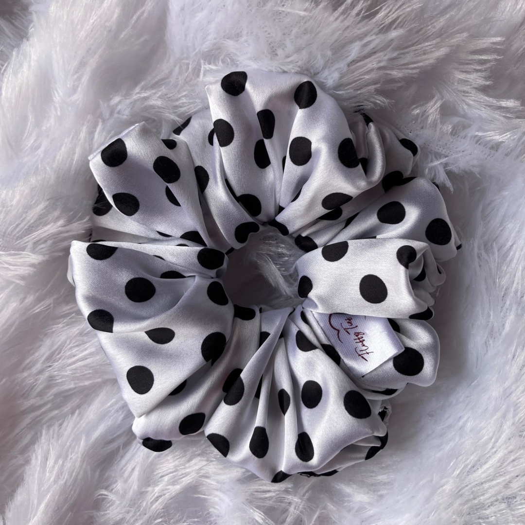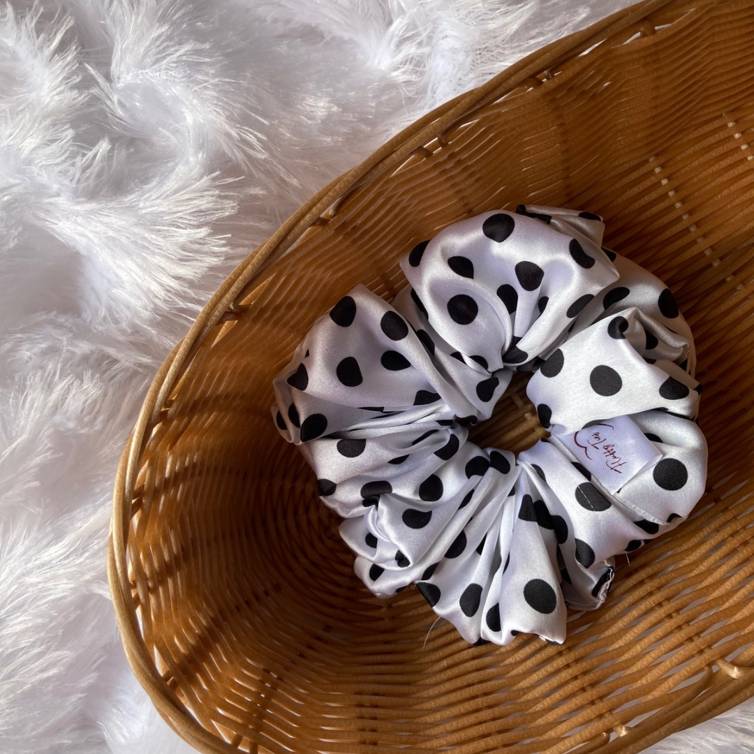 Say hello to playful elegance with PoolKie! This adorable scrunchie flaunts a charming black-and-white polka dot design on luxe satin fabric, giving your hair a stylish upgrade. Crafted for a snug, hair-friendly fit, it’s ideal for ponytails, messy buns, or even worn on your wrist as a pop accessory. It’s the perfect fusion of quirky and classy, ready to elevate your everyday look.